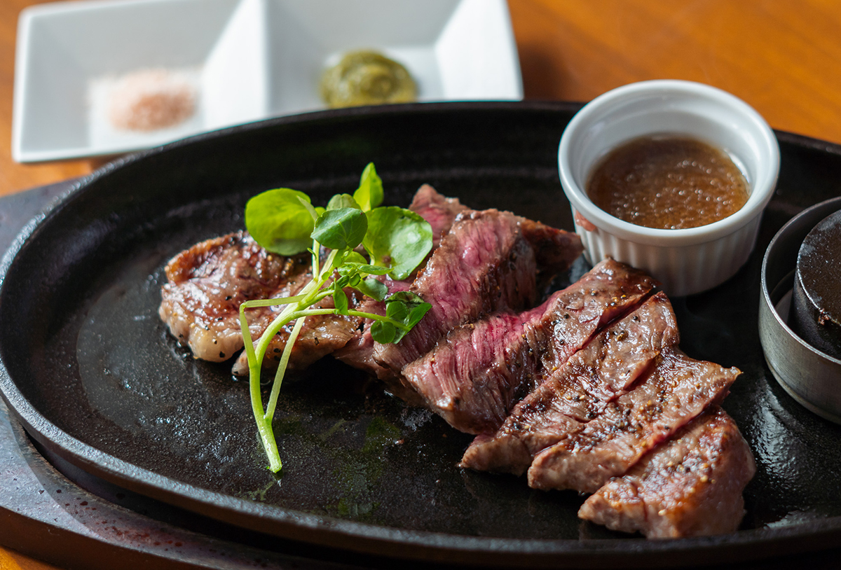こちらでは、福岡県最古のブランド牛「筑穂牛」のステーキがいただけます。