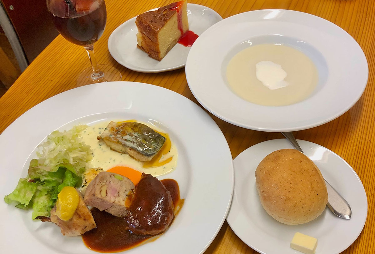 こちらのおすすめは毎日内容が違う日替わりランチ。パンやスープ、メインにデザートなどボリューム満点の内容。