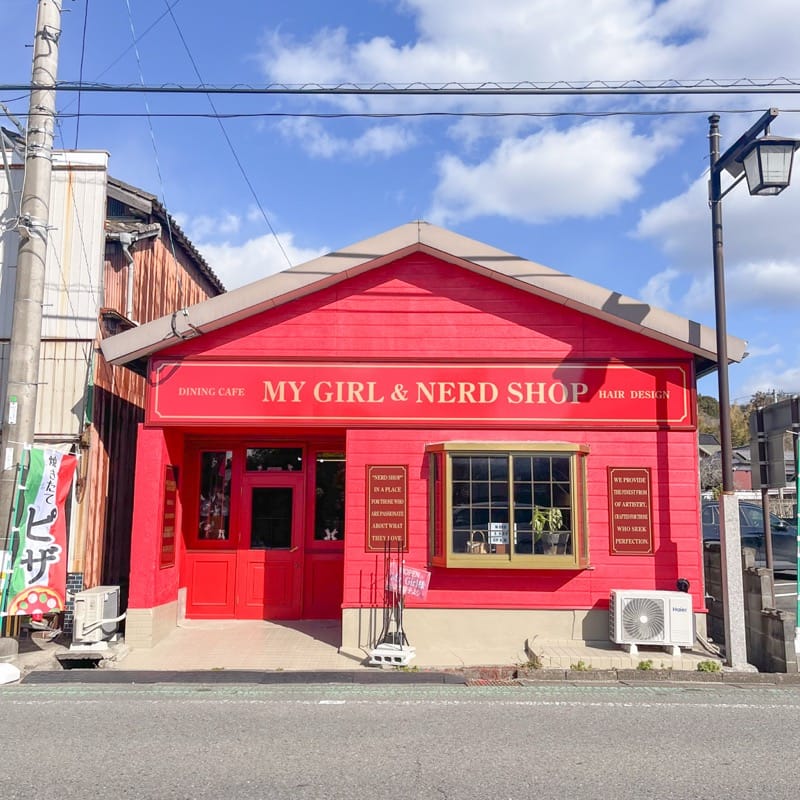 嘉麻市大隈町にあるアメリカン&アンティークな雰囲気が魅力のダイニングカフェ「My Girl」。 真っ赤な外装が目を引く店内は、店主がDIYで作り上げたこだわりの空間です。