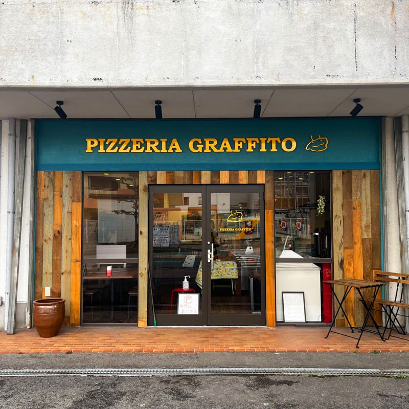 飯塚市堀池にある、おしゃれな外観が目印の「PIZZERIA GRAFFITO」。