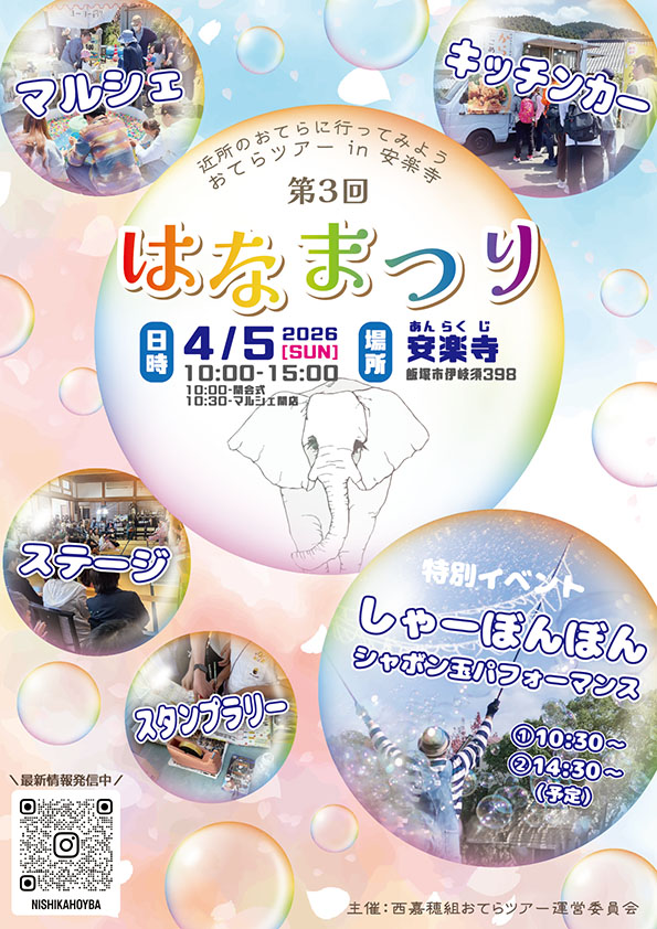 4月5日(日)、飯塚市安楽寺で「お寺ツアーin安楽寺 第3回はなまつり」が開催されます。