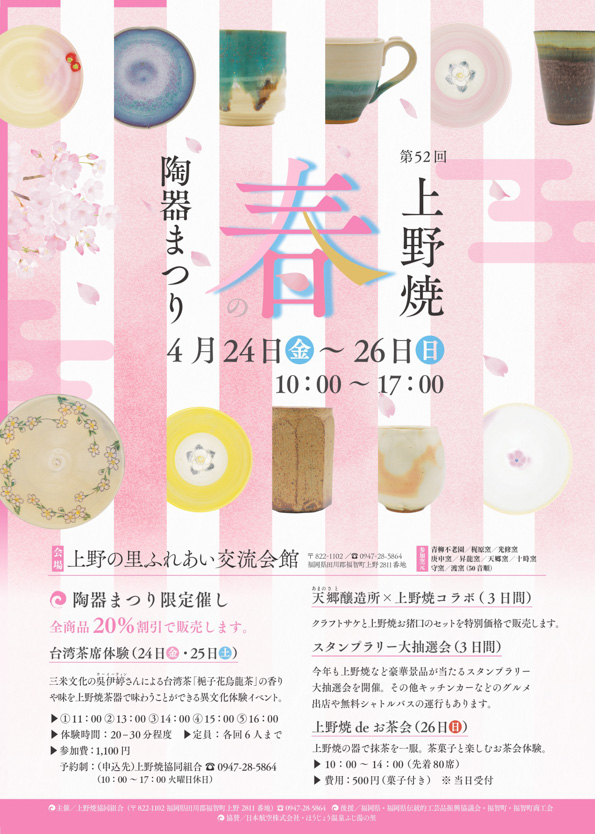 4月24日(金)から26日(日)まで、「第52回上野焼 春の陶器まつり」が開催されます!