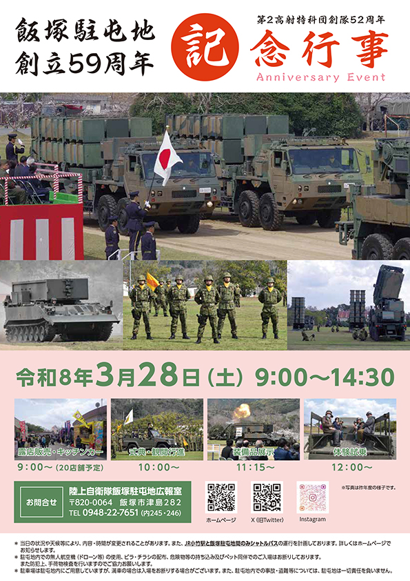 ★詳しくは飯塚駐屯地ホームページ、公式X、インスタグラムをご確認ください。