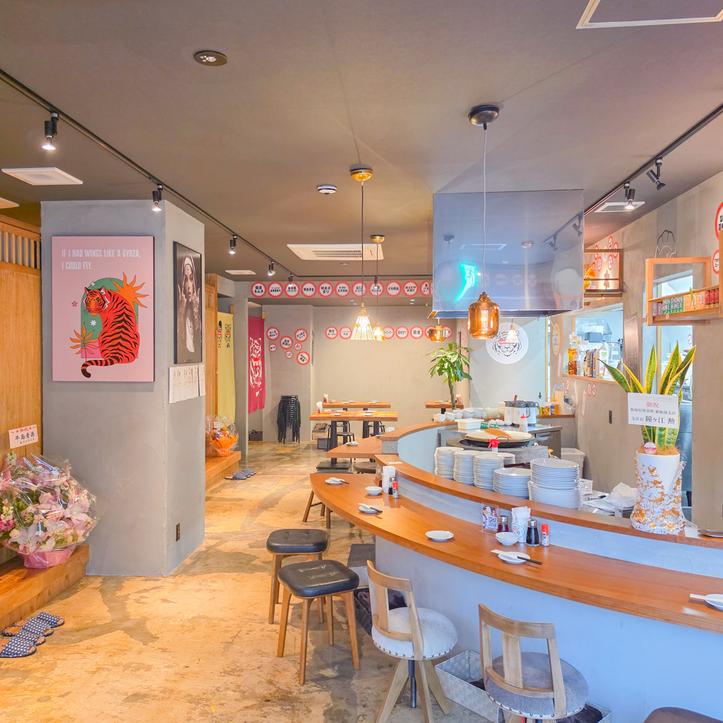 カウンター席では、餃子を焼き上げる様子を間近で楽しむことができます。