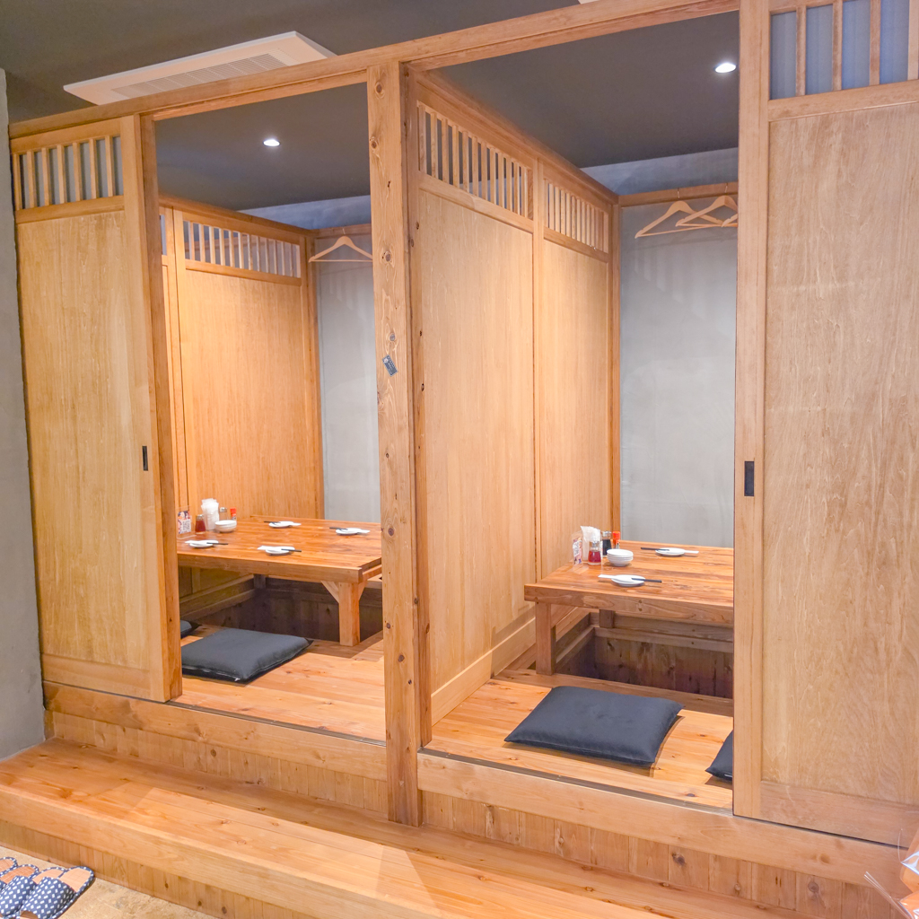 掘りごたつは仕切りを外せば最大40名まで利用でき、宴会や集まりにもぴったりです。