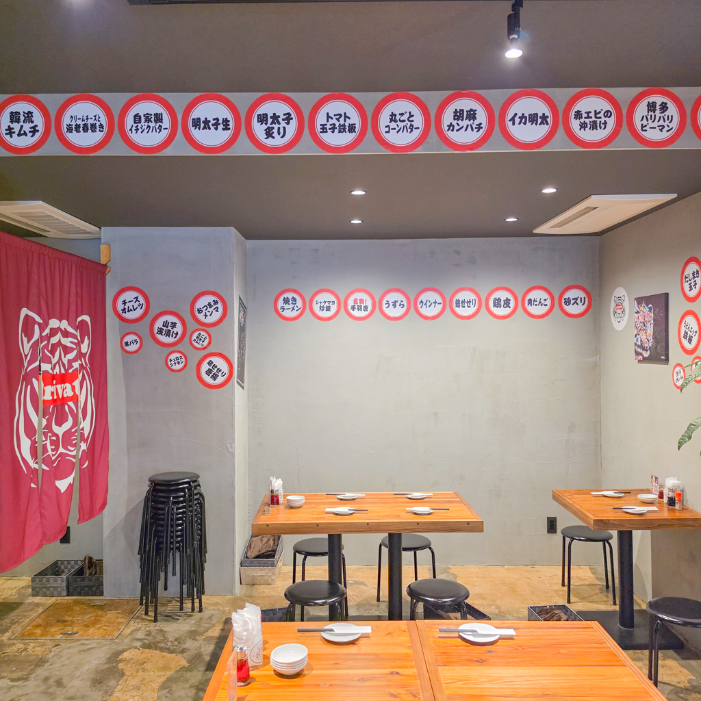 装飾に虎があしらわれた店内は、遊び心と迫力が共存するポップな空間。