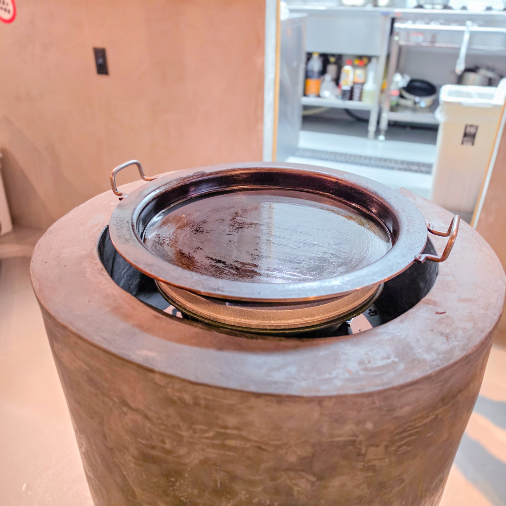 そんな遊び心あふれる空間の中で、ひときわ目を引くのが、ドンッ!とお客様に一番近い場所に設置された鉄鍋。