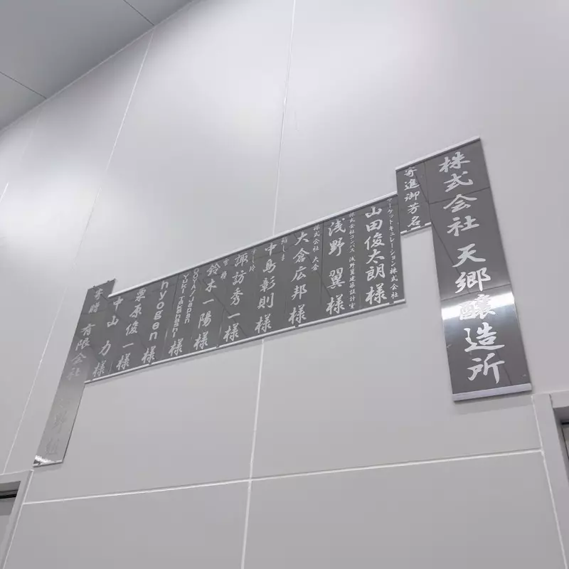 醸造所に入ると支援者の名前が大切に刻まれています。