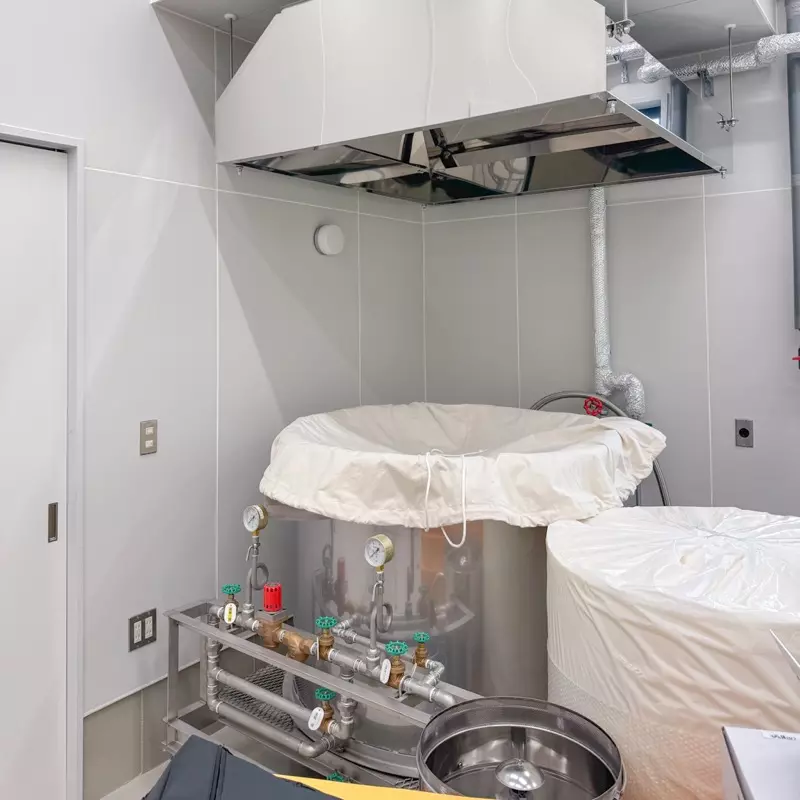 蔵の中には、ぴかぴかの機械と真新しいタンクがずらり。