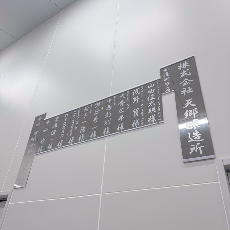 醸造所に入ると支援者の名前が大切に刻まれています。