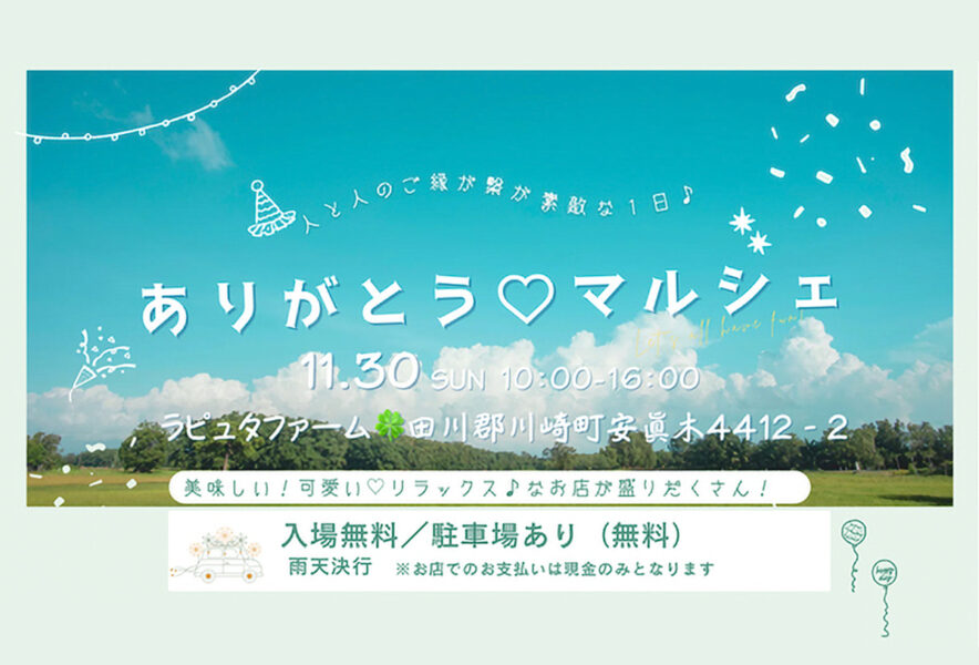 11月30日(日)、ラピュタファームで「ありがとう♡マルシェ」が開催されます。