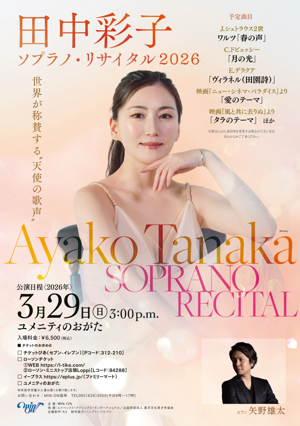 3月29日(日)ユメニティのおがたにて「田中彩子 ソプラノ・リサイタル2026」開催。