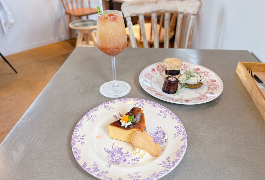 手前:バターナッツかぼちゃのバスクチーズケーキ ドリンクセット 1,232円・奥:店主さんおすすめスイーツ3点