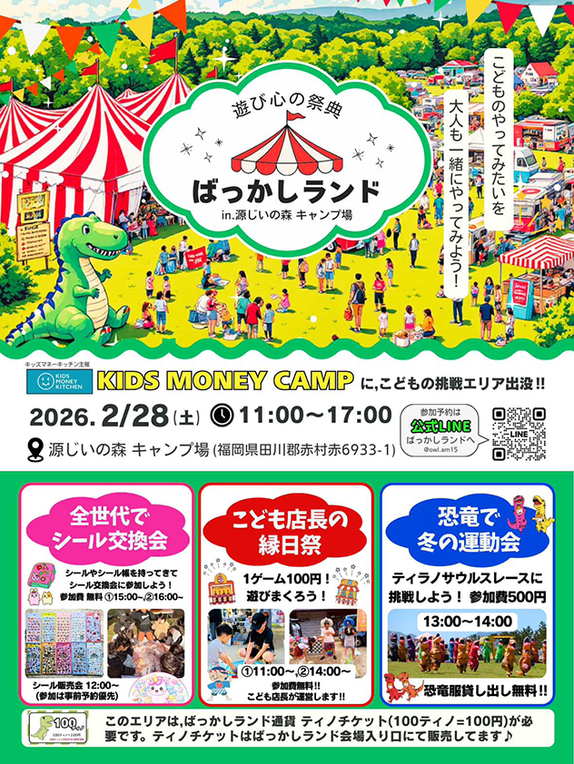 2月28日(土)、源じいの森キャンプ場で「ばっかしランド in 源じいの森キャンプ場」が開催されます。