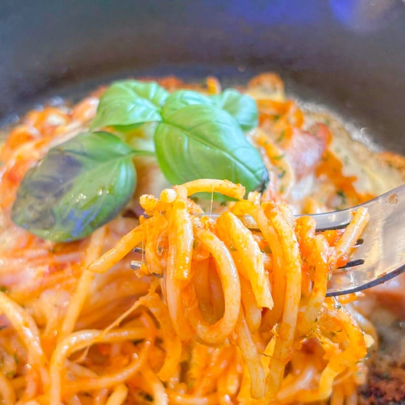 アツアツの状態で提供され、パスタの下には卵が敷かれています。