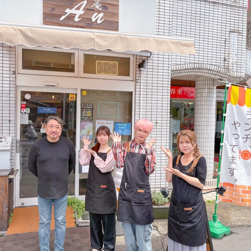 左から、店主の藤下さん・スタッフのあやさん・こうきさん・ミキさん