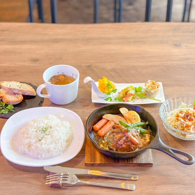 ハンバーグセット 1,500円(ライスかバゲットが選べます。ライスはおかわりOK)