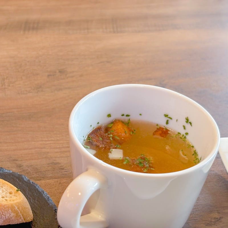 スープに入っているクルトンは、バゲットを揚げて作られている自家製です。