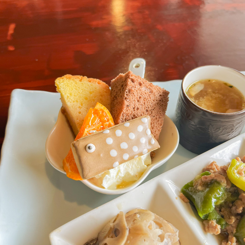 ワンプレートの中に、スープから食後のプチデザートまで揃っているのが魅力。