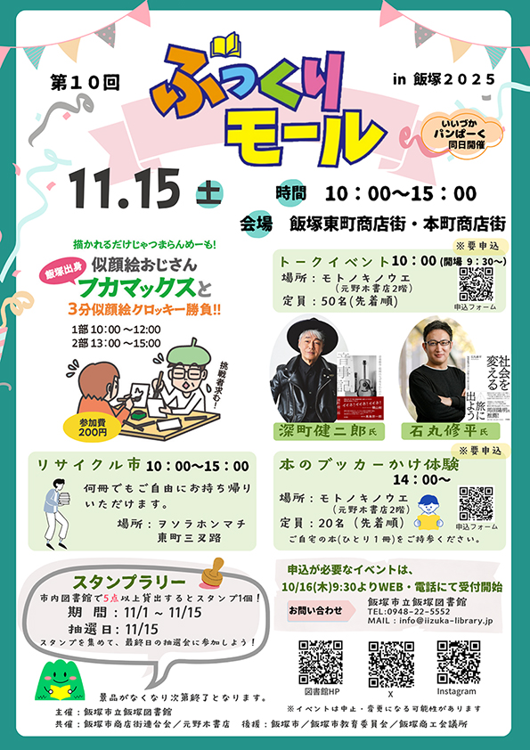 11月15日(土)、飯塚東町商店街・本町商店街にて「第10回ぶっくりモール in 飯塚2025」が開催されます。