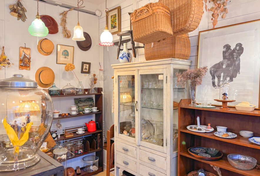古今東西のアンティークや古道具、古着などが勢ぞろい。掘り出し物との出会いがあるかも。