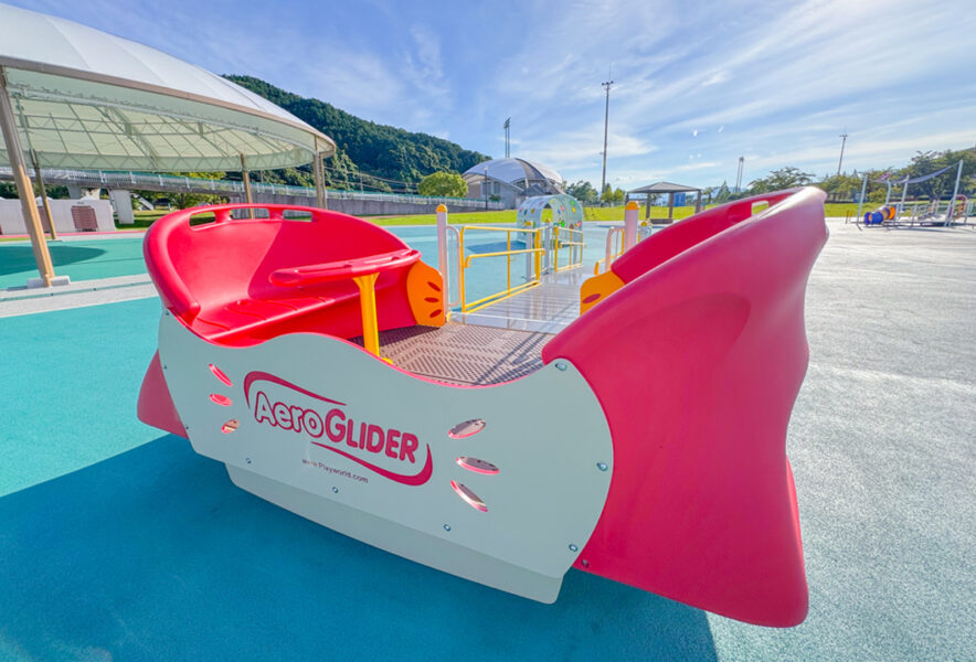 背もたれ付きの車いす利用者がそのまま快適に乗れる設計になっており、安全性にも配慮された画期的な遊具になっています。