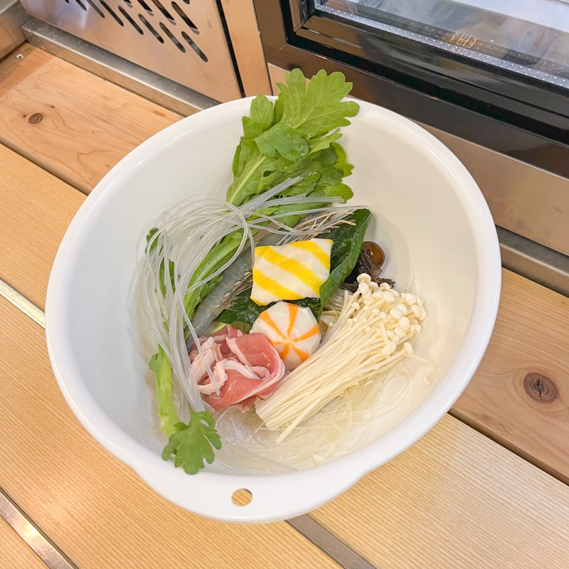 牛肉や春菊、魚団子など9種類の具材を選びました。
