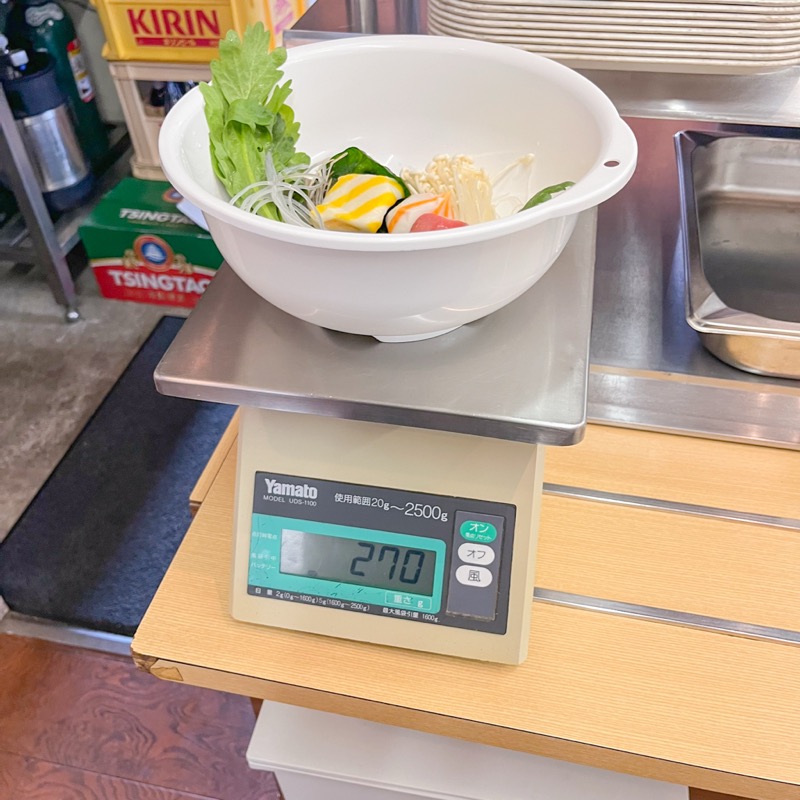 選んだ具材を量ってもらい、辛さを選んで調理してもらいます。