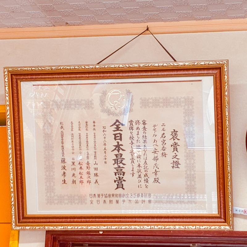 全日本和菓子大品評会・全日本最高賞の表彰状