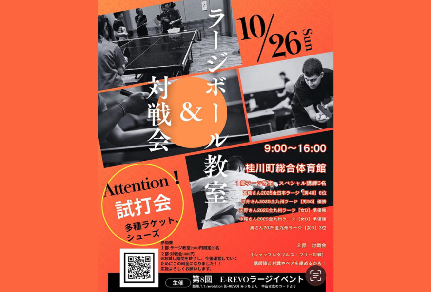 10月26日(土)、桂川町総合体育館で「ラージボール教室&対戦会」が行われます。