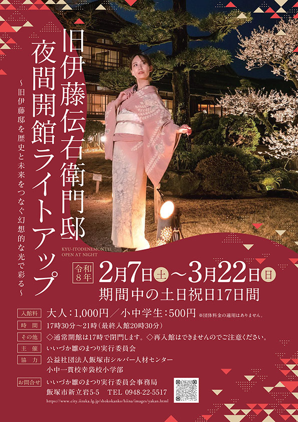 2月7日(土)から、「旧伊藤伝右衛門邸 夜間開館ライトアップ」が開催されます。