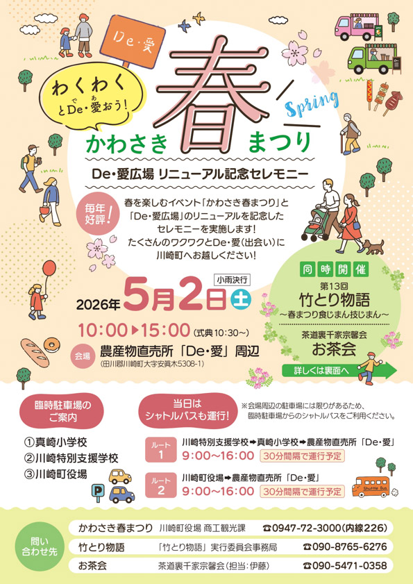 5月2日(土)、川崎町農産物直売所「De・愛」周辺で春を彩る恒例イベント「かわさき春まつり」が開催されます。