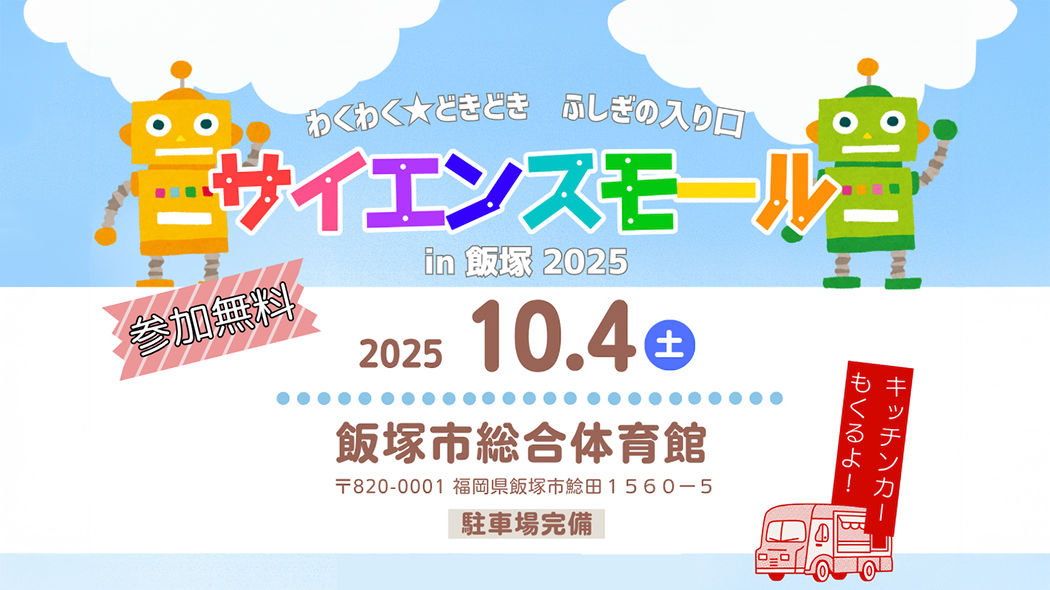 10月4日(土)、飯塚市総合体育館にて今年もわくわくどきどきの科学イベント「サイエンスモール in 飯塚202 […]