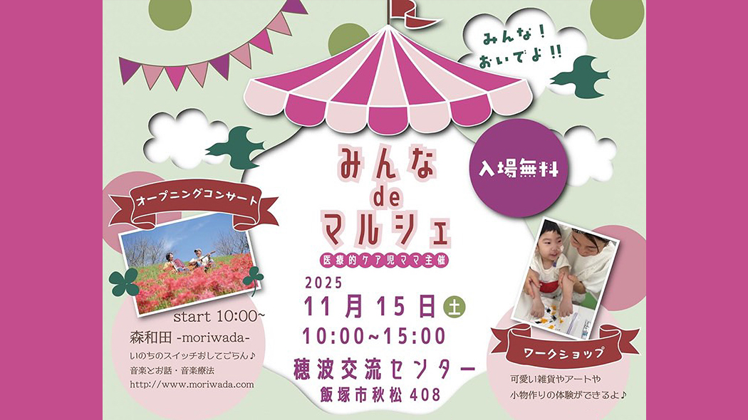 11月15日(土)、穂波交流センターで「みんなdeマルシェ」が開催されます。 このマルシェは、医療的ケアや特別 […]