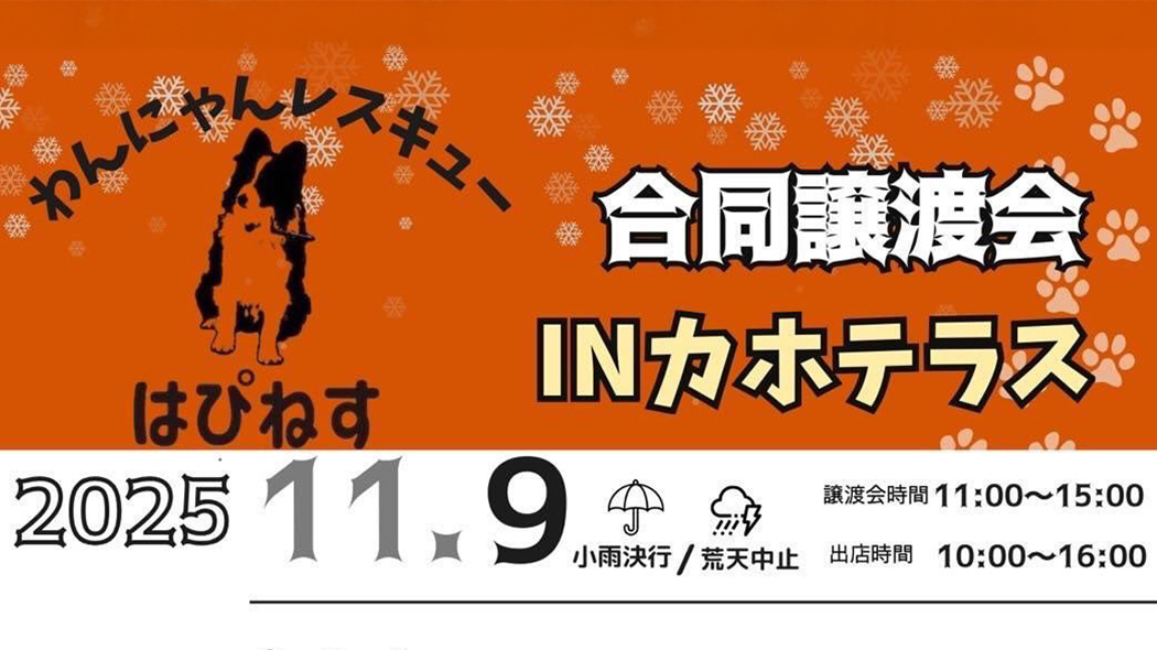 11月9日(日)、カホテラスで「合同譲渡会INカホテラス」が開催されます。 福岡県動物愛護センターに登録し、保 […]