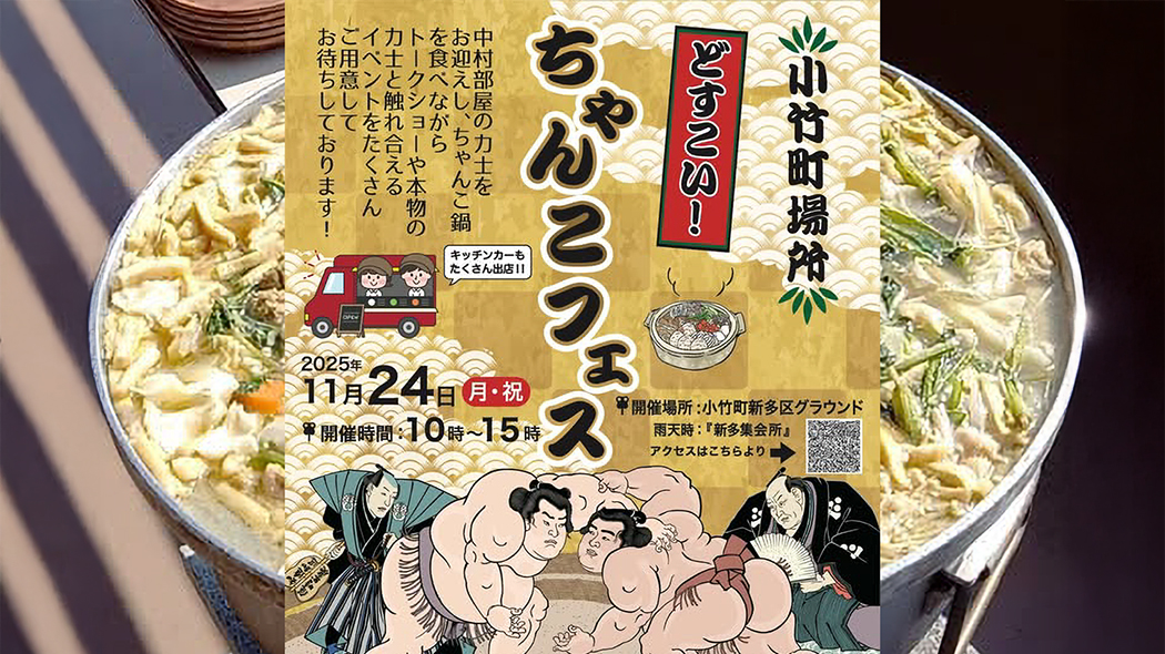 11月24日(月・祝)、小竹町新多区グラウンドで「どすこい!ちゃんこフェス」が開催されます。 当日は中村部屋か […]