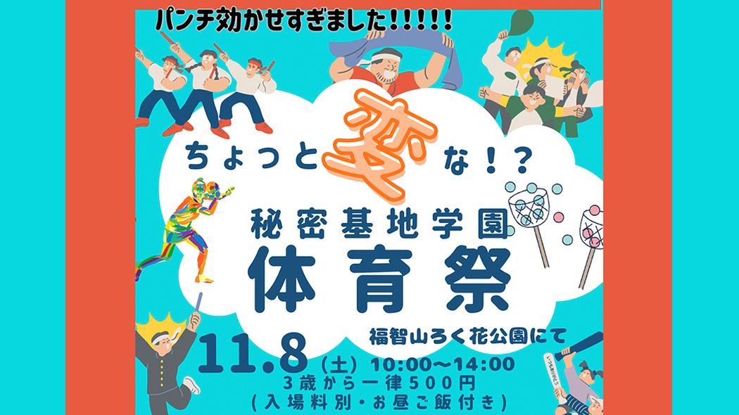11月8日(土)、直方市の福智山ろく花公園で「秘密基地学園体育祭」が開催されます。 この体育祭は、「学校の運動 […]