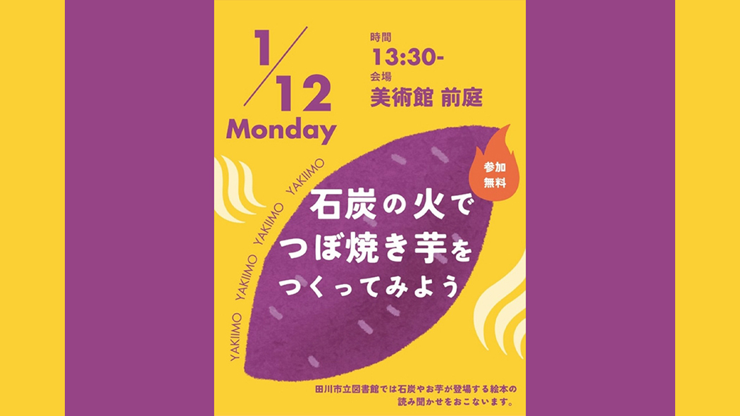 1:30 PM - 3:00 PM 石炭の火でつぼ焼き芋をつくってみよう 1月12日 @ 1:30 PM - 3:00 PM 石炭の火でつぼ焼き芋をつくってみよう 1月12日(月・祝)、田川市美術館で「石炭の火でつぼ焼き芋をつくってみよう」が開催されます。 石炭で火をおこし […]