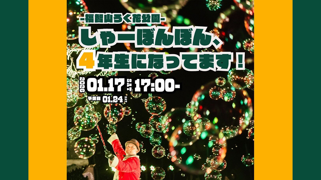 5:00 PM - 8:00 PM しゃーぼんぼん4年生になってます! 1月17日 @ 5:00 PM - 8:00 PM しゃーぼんぼん4年生になってます! 1月17日(土)、福智山ろく花公園で、しゃーぼんぼん×福智山ろく花公園特別イベント「しゃーぼんぼん4年生になっ […]