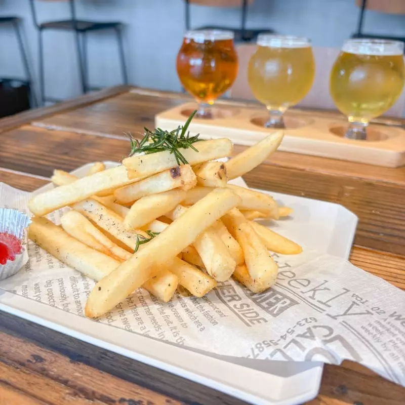 フードメニューからは、ローズマリーと黒胡椒のポテトフライ、ハムチーズホットサンドの2品を選んでみました。