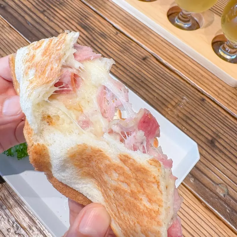 アツアツのハムチーズのホットサンドは、もう見ただけでおいしさが伝わってきます。
