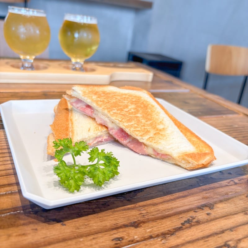 アツアツのハムチーズのホットサンドは、もう見ただけでおいしさが伝わってきます。