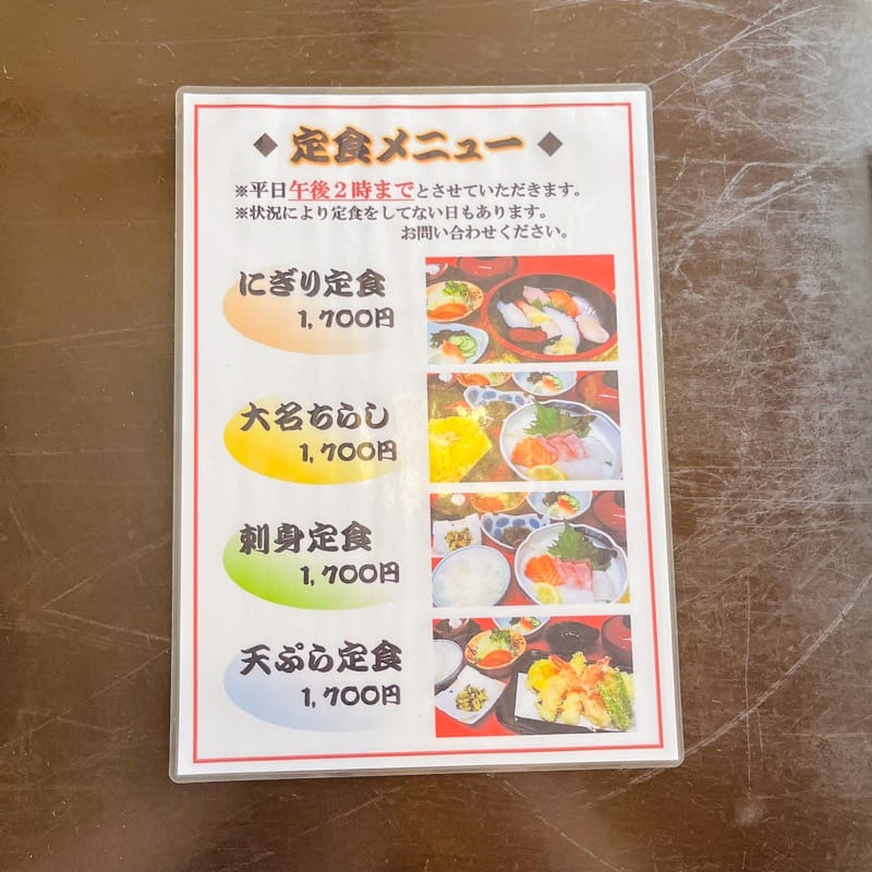 オープンから14時まではお昼の定食として、リーズナブルにお寿司がいただけます。