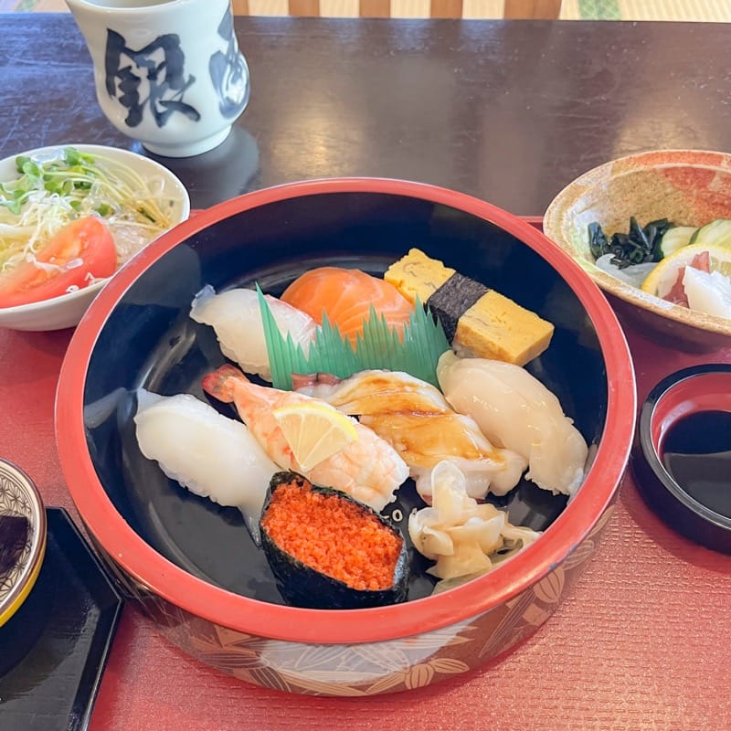 素材にこだわった美味しいお寿司に、お吸い物やお野菜もいただけて、大満足なランチ定食でした。