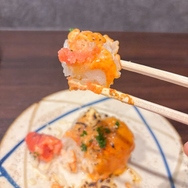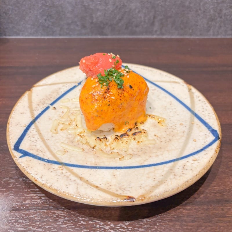 口に入れた瞬間、香ばしさとクリーミーさが一気に広がります。チーズ✕明太マヨって聞いただけで間違いない組み合わせだけど、炙りの香りがプラスされることで、さらに満足感アップ◎