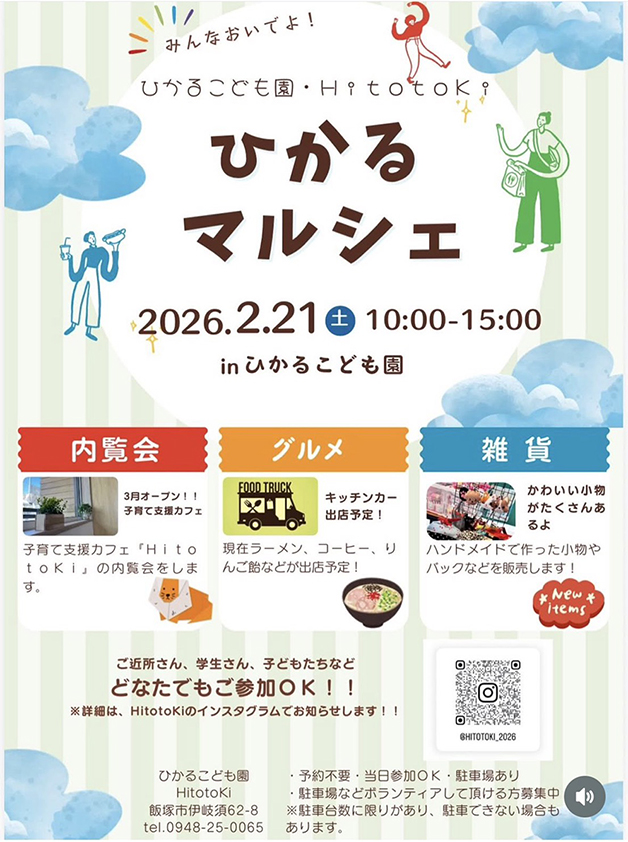2月21日(土)、ひかるこども園HitotoKiにて「ひかるマルシェ」が開催されます。