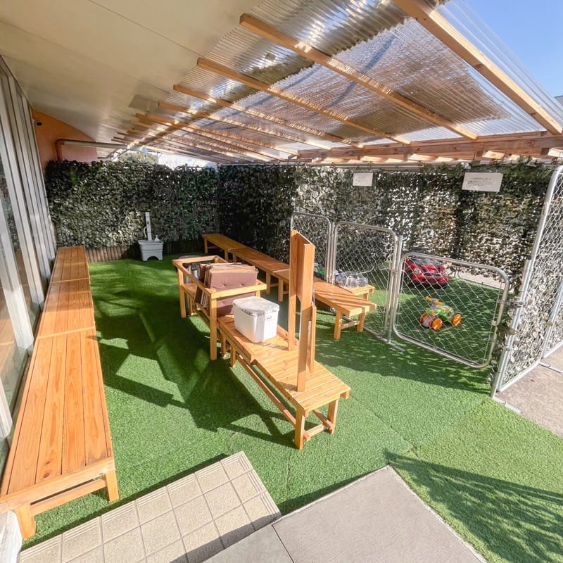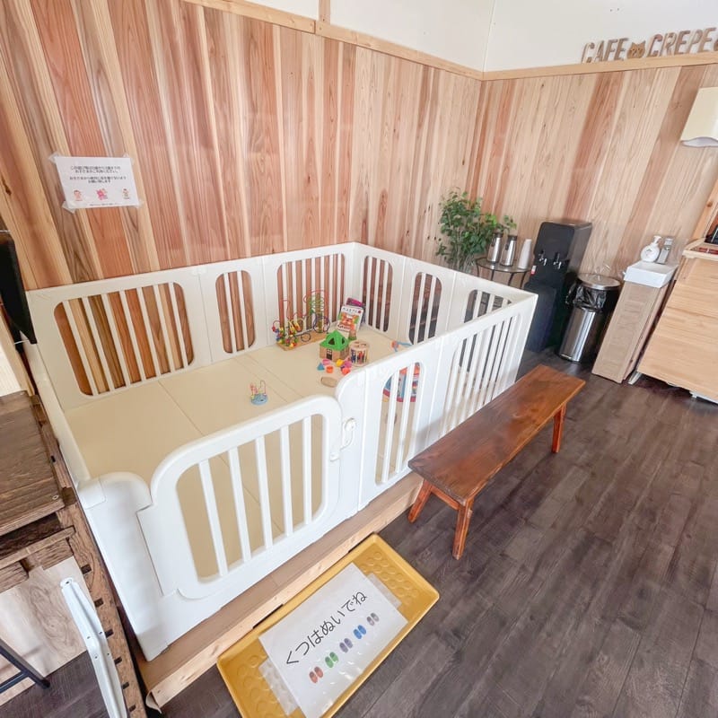 お店の前の食事スペースにもキッズコーナーができ、家族でゆっくりとクレープを楽しむことができますよ♪