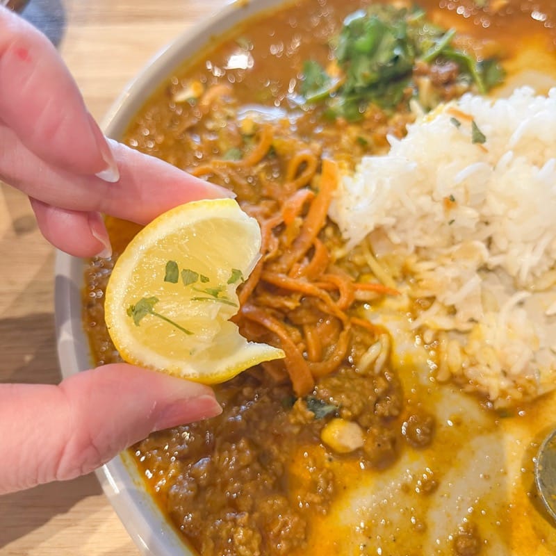 付け合わせのレモンを絞ると、爽やかな酸味が加わって、カレーの輪郭がまたガラリと変わります。