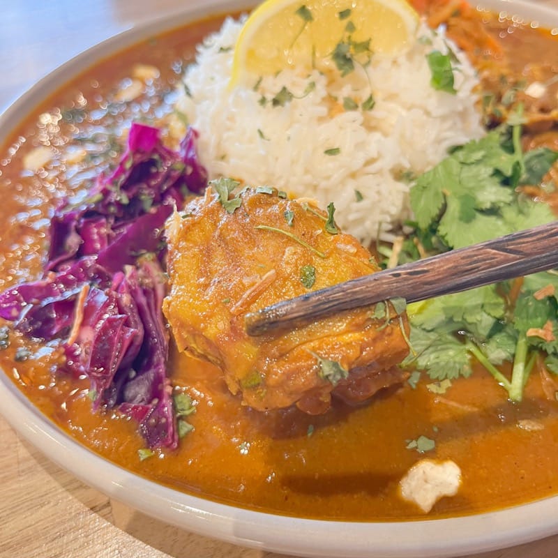 ホロホロになるまでじっくり煮込まれたチキンは、口の中でほどける柔らかさで食べ応えも感じられます。