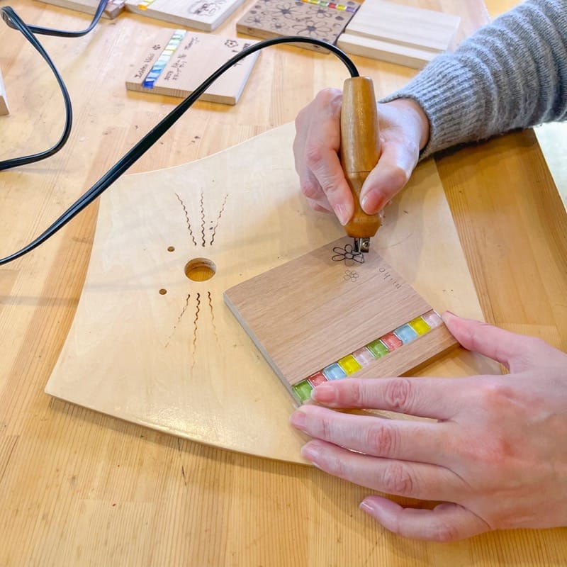 キーホルダーやコースター、赤ちゃんの歯がためなど、好きな木を選んで自分で文字などを入れたりできます。